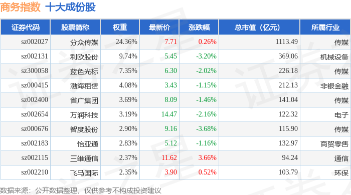 近10日内商务指数(399242)成份股做了调整,新纳入了1只股票。