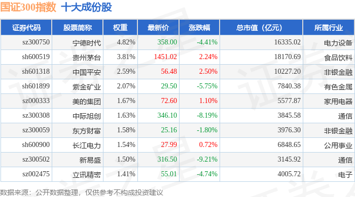 国证300(399312)指数十大成份股详情如下: