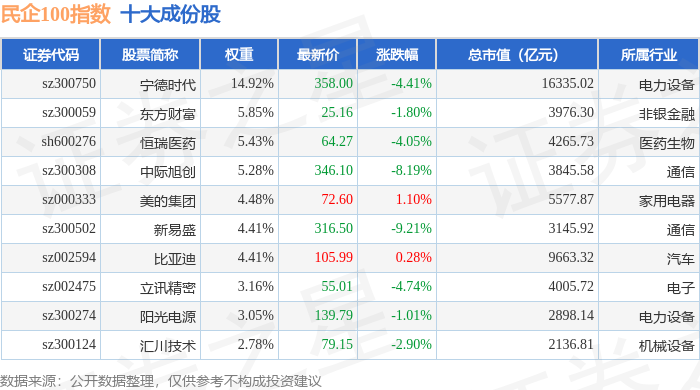 资金流向方面,民企100(399362)指数成份股当日主力资金净流出合计190.55亿元,游资资金净流入合计51.43亿元,散户资金净流入合计139.12亿元。成份股资金流向详情见下表:
