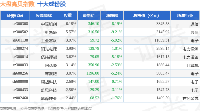 证券之星消息,10月14日,大盘高贝(399405)指数报收于3028.36点,跌2.52%,成交2901.35亿元,换手率2.26%。当日该指数成份股中,上涨的有17家,中油资本以7.07%的涨幅领涨,下跌的有33家,新易盛以9.21%的跌幅领跌。