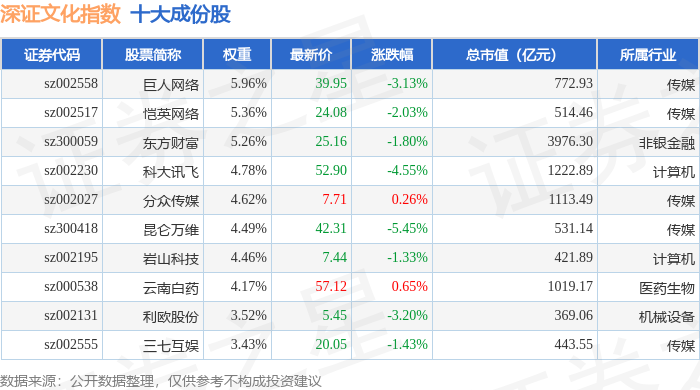 资金流向方面,深证文化(399654)指数成份股当日主力资金净流出合计37.31亿元,游资资金净流入合计11.04亿元,散户资金净流入合计26.26亿元。成份股资金流向详情见下表: