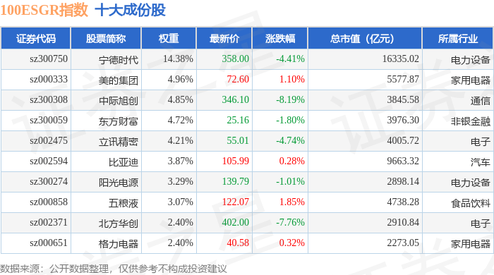 资金流向方面,100ESGR(470027)指数成份股当日主力资金净流出合计145.87亿元,游资资金净流入合计37.87亿元,散户资金净流入合计108.0亿元。成份股资金流向详情见下表: