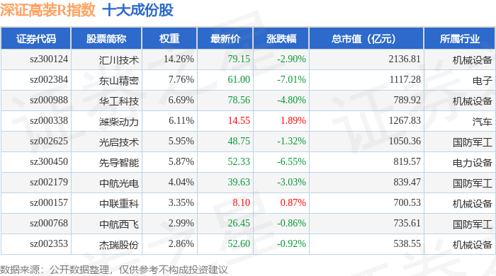 资金流向方面,深证高装R(470037)指数成份股当日主力资金净流出合计33.02亿元,游资资金净流入合计11.19亿元,散户资金净流入合计21.83亿元。成份股资金流向详情见下表: