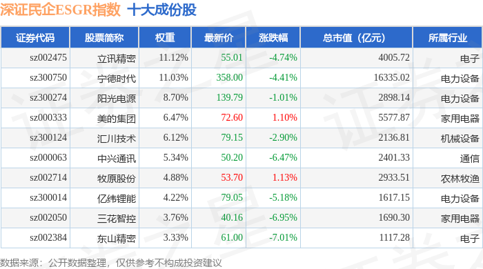 深证民企ESGR(470056)指数十大成份股详情如下: