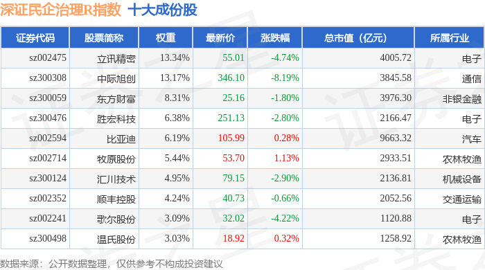 资金流向方面,深证民企治理R(470058)指数成份股当日主力资金净流出合计103.27亿元,游资资金净流入合计17.84亿元,散户资金净流入合计85.43亿元。成份股资金流向详情见下表:
