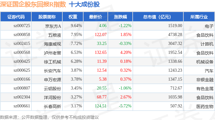 深证国企股东回报R(470064)指数十大成份股详情如下: