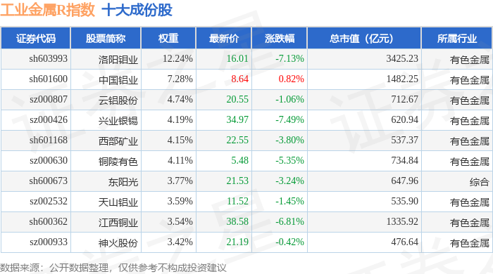 资金流向方面,工业金属R(480043)指数成份股当日主力资金净流出合计54.32亿元,游资资金净流入合计2.58亿元,散户资金净流入合计51.74亿元。成份股资金流向详情见下表: