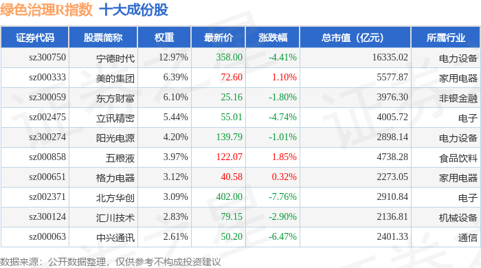 绿色治理R(480058)指数十大成份股详情如下: