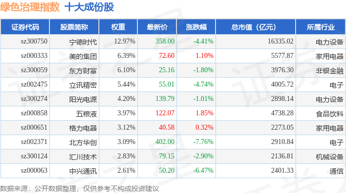 资金流向方面,绿色治理(980058)指数成份股当日主力资金净流出合计127.3亿元,游资资金净流入合计39.28亿元,散户资金净流入合计88.02亿元。成份股资金流向详情见下表: