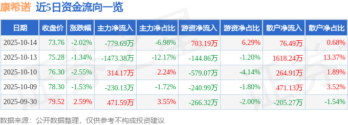 10月14日的资金流向数据方面,主力资金净流出779.69万元,占总成交额6.98%,游资资金净流入703.19万元,占总成交额6.29%,散户资金净流入76.49万元,占总成交额0.68%。
