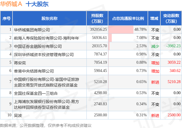 根据华侨城A2025年中报公布的十大股东详情如下: