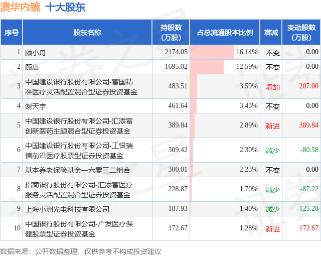 根据澳华内镜2025年中报公布的十大股东详情如下: