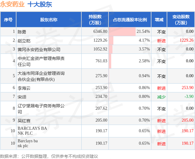 证券之星消息,10月14日永安药业发布公告《永安药业:关于公司控股股东、实际控制人之一致行动人减持计划实施完成的公告》,其股东黄冈永安药业有限公司于2025年9月5日至2025年10月13日间合计减持222.23万股,占公司目前总股本的0.7541%,变动期间该股股价下跌1.84%,截止10月13日收盘报18.63元。