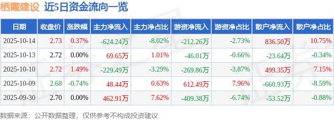 10月14日的资金流向数据方面,主力资金净流出624.24万元,占总成交额8.02%,游资资金净流出212.26万元,占总成交额2.73%,散户资金净流入836.5万元,占总成交额10.75%。