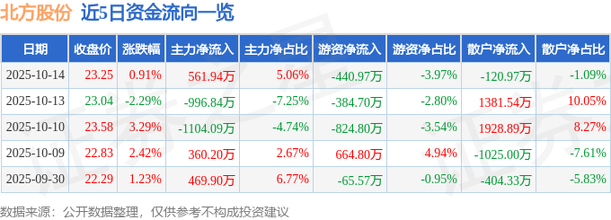 10月14日的资金流向数据方面,主力资金净流入561.94万元,占总成交额5.06%,游资资金净流出440.97万元,占总成交额3.97%,散户资金净流出120.97万元,占总成交额1.09%。