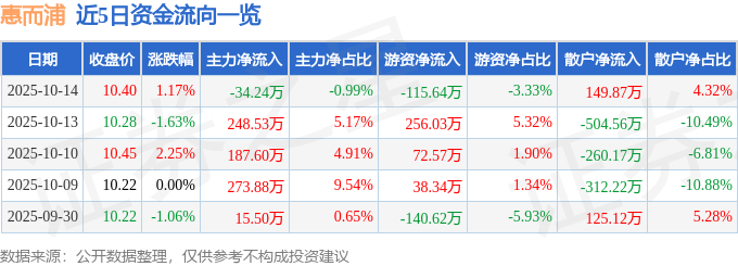 10月14日的资金流向数据方面,主力资金净流出34.24万元,占总成交额0.99%,游资资金净流出115.64万元,占总成交额3.33%,散户资金净流入149.87万元,占总成交额4.32%。