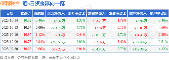 证券之星消息,截至2025年10月14日收盘,保利联合(002037)报收于10.82元,下跌0.46%,换手率2.04%,成交量9.89万手,成交额1.08亿元。