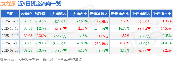 10月14日的资金流向数据方面,主力资金净流出87.0万元,占总成交额3.88%,游资资金净流入56.8万元,占总成交额2.53%,散户资金净流入30.2万元,占总成交额1.35%。