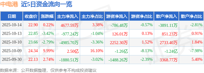 证券之星消息,截至2025年10月14日收盘,中电港(001287)报收于22.9元,上涨0.22%,换手率13.33%,成交量58.29万手,成交额13.84亿元。