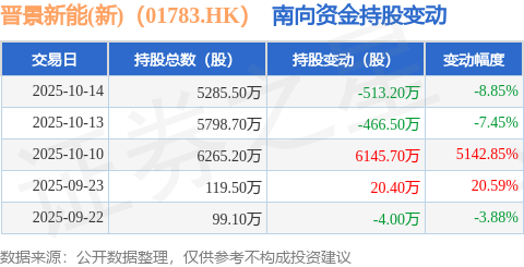 证券之星消息,10月14日南向资金减持513.2万股晋景新能(新)(01783.HK)。近5个交易日中,获南向资金增持的有2天,累计净增持5182.4万股。截至目前,南向资金持有晋景新能(新)(01783.HK)5285.5万股,占公司已发行普通股的1.9%。