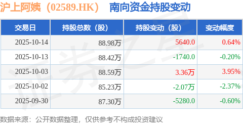 证券之星消息,10月14日南向资金增持5640.0股沪上阿姨(02589.HK)。近5个交易日中,获南向资金增持的有2天,累计净增持1.16万股。截至目前,南向资金持有沪上阿姨(02589.HK)88.98万股,占公司已发行普通股的1.49%。