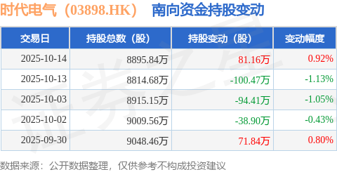 证券之星消息,10月14日南向资金增持81.16万股时代电气(03898.HK)。近5个交易日中,获南向资金减持的有3天,累计净减持80.78万股。近20个交易日中,获南向资金增持的有12天,累计净增持163.35万股。截至目前,南向资金持有时代电气(03898.HK)8895.84万股,占公司已发行普通股的18.18%。