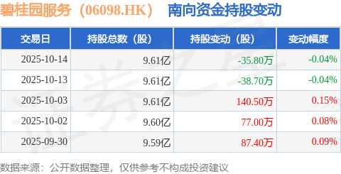 证券之星消息,10月14日南向资金减持35.8万股碧桂园服务(06098.HK)。近5个交易日中,获南向资金增持的有3天,累计净增持230.4万股。近20个交易日中,获南向资金减持的有13天,累计净减持2303.8万股。截至目前,南向资金持有碧桂园服务(06098.HK)9.61亿股,占公司已发行普通股的28.72%。