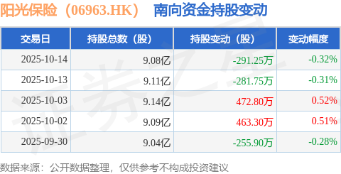 证券之星消息,10月14日南向资金减持291.25万股阳光保险(06963.HK)。近5个交易日中,获南向资金增持的有2天,累计净增持107.2万股。近20个交易日中,获南向资金减持的有10天,累计净减持369.51万股。截至目前,南向资金持有阳光保险(06963.HK)9.08亿股,占公司已发行普通股的26.1%。