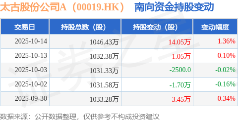 证券之星消息,10月14日南向资金增持14.05万股太古股份公司A(00019.HK)。近5个交易日中,获南向资金增持的有3天,累计净增持16.6万股。近20个交易日中,获南向资金增持的有13天,累计净增持45.85万股。截至目前,南向资金持有太古股份公司A(00019.HK)1046.43万股,占公司已发行普通股的1.33%。