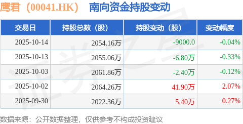 证券之星消息,10月14日南向资金减持9000.0股鹰君(00041.HK)。近5个交易日中,获南向资金增持的有2天,累计净增持37.2万股。近20个交易日中,获南向资金增持的有10天,累计净增持57.0万股。截至目前,南向资金持有鹰君(00041.HK)2054.16万股,占公司已发行普通股的2.74%。