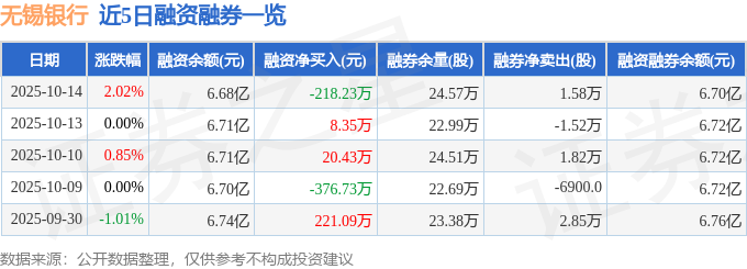 无锡银行融资融券信息显示,融资方面,当日融资买入2500.58万元,融资偿还2718.81万元,融资净偿还218.23万元。融券方面,融券卖出2.0万股,融券偿还4200.0股,融券余量24.57万股,融券余额148.65万元。融资融券余额6.7亿元。