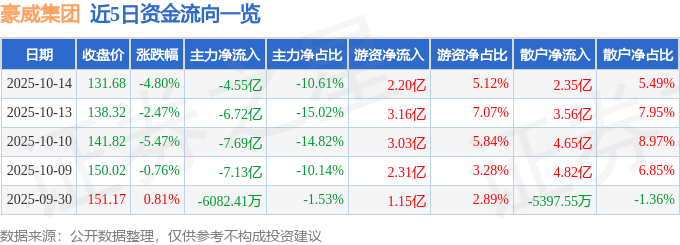 10月14日的资金流向数据方面,主力资金净流出4.55亿元,占总成交额10.61%,游资资金净流入2.2亿元,占总成交额5.12%,散户资金净流入2.35亿元,占总成交额5.49%。