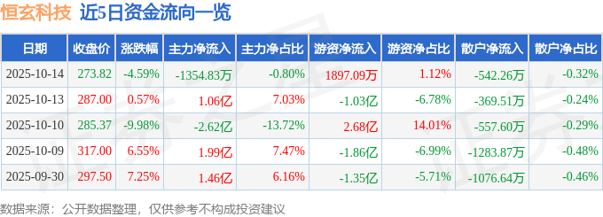 证券之星消息,截至2025年10月14日收盘,恒玄科技(688608)报收于273.82元,下跌4.59%,换手率3.57%,成交量6.01万手,成交额16.97亿元。