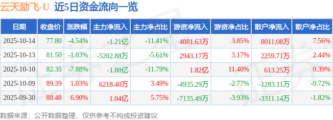 证券之星消息,截至2025年10月14日收盘,云天励飞(688343)报收于77.8元,下跌4.54%,换手率4.99%,成交量13.17万手,成交额10.6亿元。