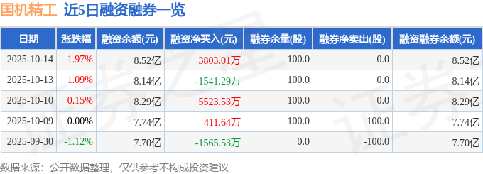 国机精工融资融券信息显示,融资方面,当日融资买入1.12亿元,融资偿还7421.76万元,融资净买入3803.01万元。融券方面,融券卖出0.0股,融券偿还0.0股,融券余量100.0股,融券余额0.27万元。融资融券余额8.52亿元。