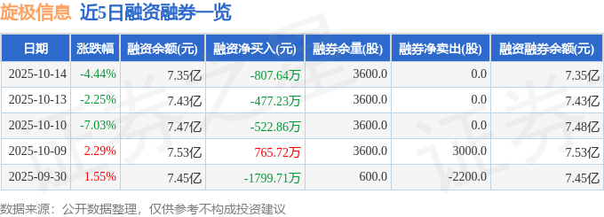 证券之星消息,截至2025年10月14日收盘,旋极信息(300324)报收于5.81元,下跌4.44%,换手率7.16%,成交量122.5万手,成交额7.28亿元。