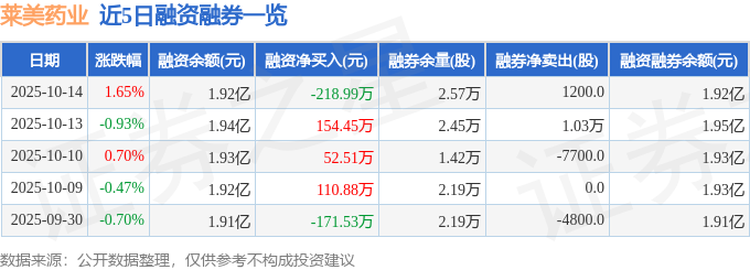 莱美药业融资融券信息显示,融资方面,当日融资买入676.12万元,融资偿还895.11万元,融资净偿还218.99万元。融券方面,融券卖出1400.0股,融券偿还200.0股,融券余量2.57万股,融券余额11.1万元。融资融券余额1.92亿元。