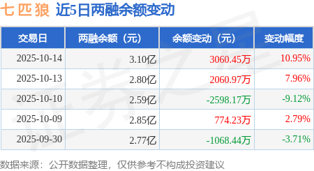 证券之星消息,10月14日,七 匹 狼(002029)融资买入8650.57万元,融资偿还5590.12万元,融资净买入3060.45万元,融资余额3.1亿元,近20个交易日中有11个交易日出现融资净买入。