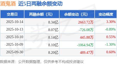 证券之星消息,10月14日,酒鬼酒(000799)融资买入1.69亿元,融资偿还1.42亿元,融资净买入2663.17万元,融资余额8.33亿元。