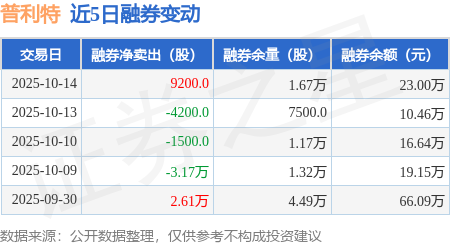 融券方面,当日融券卖出9200.0股,融券偿还0.0股,融券净卖出9200.0股,融券余量1.67万股。