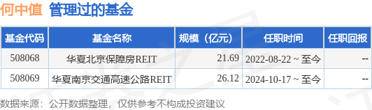 何中值先生:学士。2014年起从事基础设施项目的运营管理工作。曾就职于中国通号西安铁路信号有限责任公司、通号(西安)轨道交通工业集团有限公司,从事基础设施财务工作。2021年9月加入华夏基金管理有限公司基础设施与不动产投资部,具有5年以上基础设施运营管理经验。2022年8月22日起,担任华夏北京保障房封闭式基础设施证券投资基金基金经理。