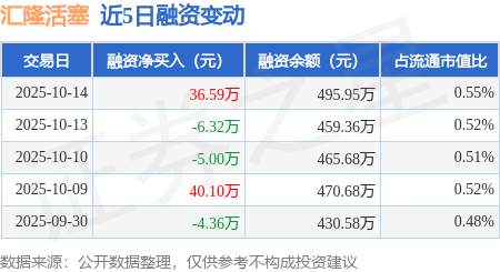 证券之星消息,10月14日,汇隆活塞(920455)融资买入40.11万元,融资偿还3.52万元,融资净买入36.59万元,融资余额495.95万元。