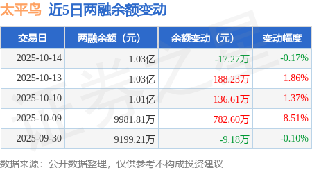 证券之星消息,10月14日,太平鸟(603877)融资买入224.44万元,融资偿还241.66万元,融资净卖出17.22万元,融资余额1.02亿元,近20个交易日中有13个交易日出现融资净买入。