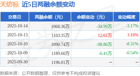 证券之星消息,10月14日,天纺标(920753)融资买入25.09万元,融资偿还60.08万元,融资净卖出34.99万元,融资余额1068.36万元。