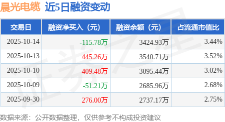 证券之星消息,10月14日,晨光电缆(920639)融资买入33.69万元,融资偿还149.47万元,融资净卖出115.78万元,融资余额3424.93万元。