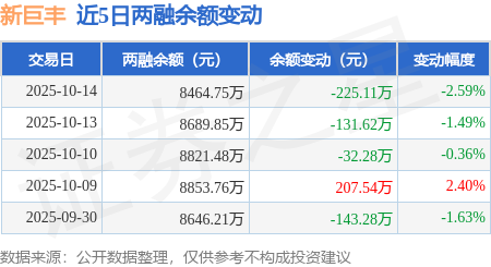 证券之星消息,10月14日,新巨丰(301296)融资买入169.01万元,融资偿还394.12万元,融资净卖出225.11万元,融资余额8464.75万元。