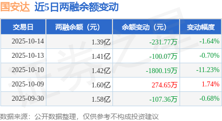 证券之星消息,10月14日,国安达(300902)融资买入512.15万元,融资偿还743.92万元,融资净卖出231.77万元,融资余额1.39亿元。