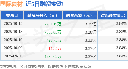 证券之星消息,10月14日,国际复材(301526)融资买入1777.33万元,融资偿还2031.52万元,融资净卖出254.19万元,融资余额3.25亿元。