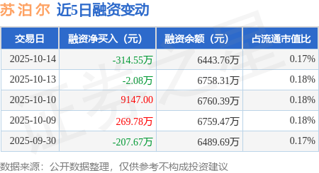 证券之星消息,10月14日,苏 泊 尔(002032)融资买入558.3万元,融资偿还872.85万元,融资净卖出314.55万元,融资余额6443.76万元,近20个交易日中有12个交易日出现融资净买入。