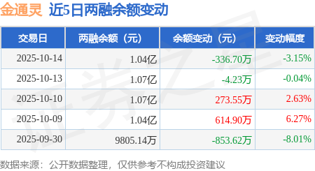 证券之星消息,10月14日,金通灵(300091)融资买入324.07万元,融资偿还660.76万元,融资净卖出336.7万元,融资余额1.04亿元。